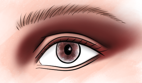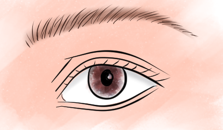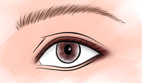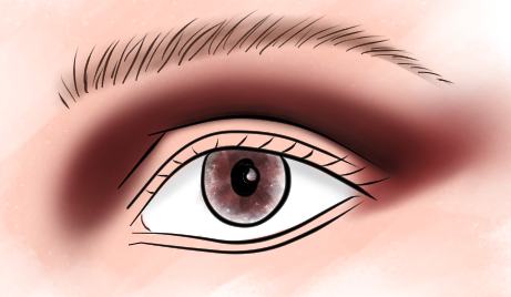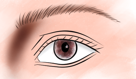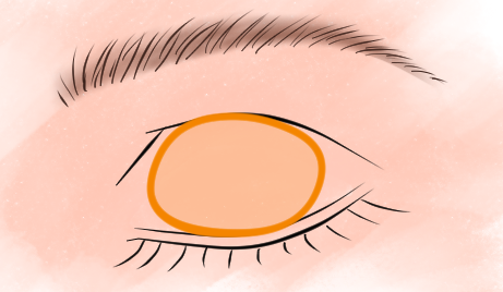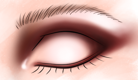 まぶた(眼球)の膨らみのハイライトを囲むようにあるくぼんだ部分がシャドーになります。