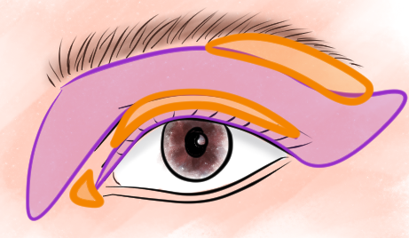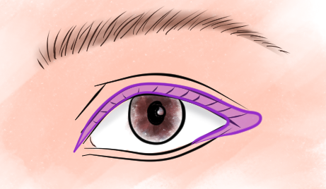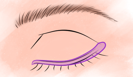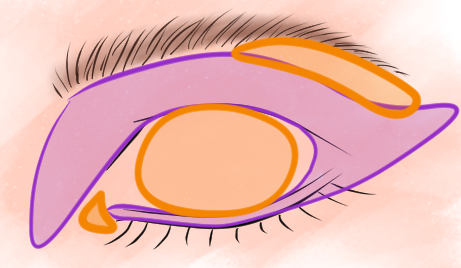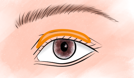 普段アイライナーを引く部分、そしてその少し上まで(二重の方は二重ラインあたりまで)