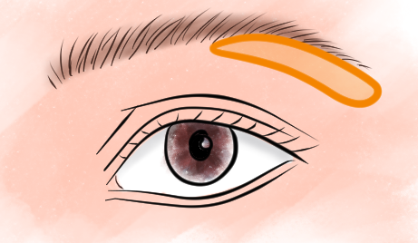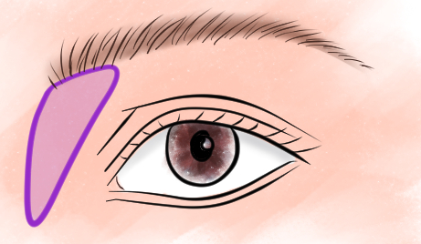 ハイライトは「目の出っ張った箇所」 まぶた、眉尻の下、目頭です。