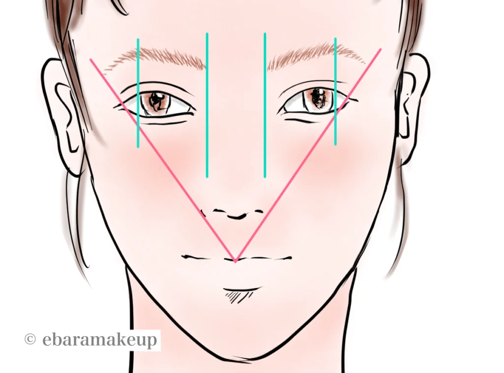 先ほどの基本のバランスを意識しながらまずは眉山と眉尻の位置を決めて描きます。