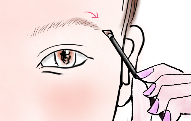 眉山へと繋いでいきます。眉全体を優しく描き進めていきましょう。