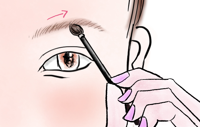 眉頭はあえて淡く残し、ふんわりとぼかしながら自眉の毛並みに寄り添うように
