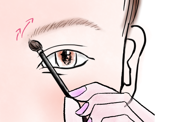眉の内側に少し濃い色味を乗せ外側に向かってぼかし、毛の濃淡を作る事で
